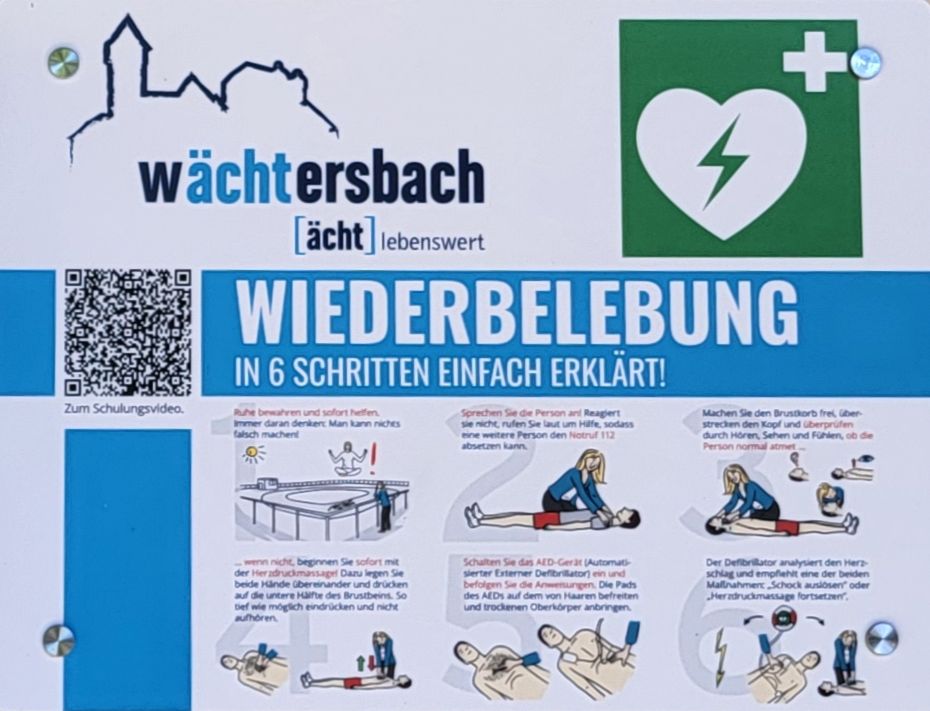 Zur Verbesserung der Sicherheit und des Wohlergehens der Bürger hat die Stadt Wächtersbach die Anschaffung von sieben Defibrillatoren für das Schloss Wächtersbach, das Bürgerhaus sowie die Dorfgemeinschaftshäuser in Neudorf, Weilers, Waldensberg, Hesseldorf und Kulturhaus Aufenau beschlossen. Die Gemeinschaftshäuser Wittgenborn und Leisenwald sind bereits ausgestattet.
