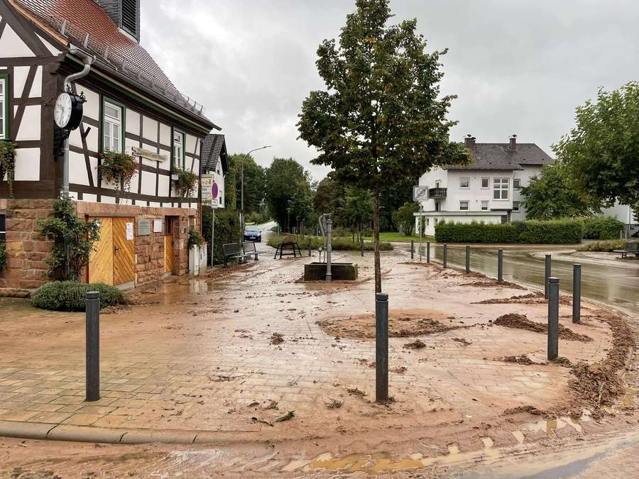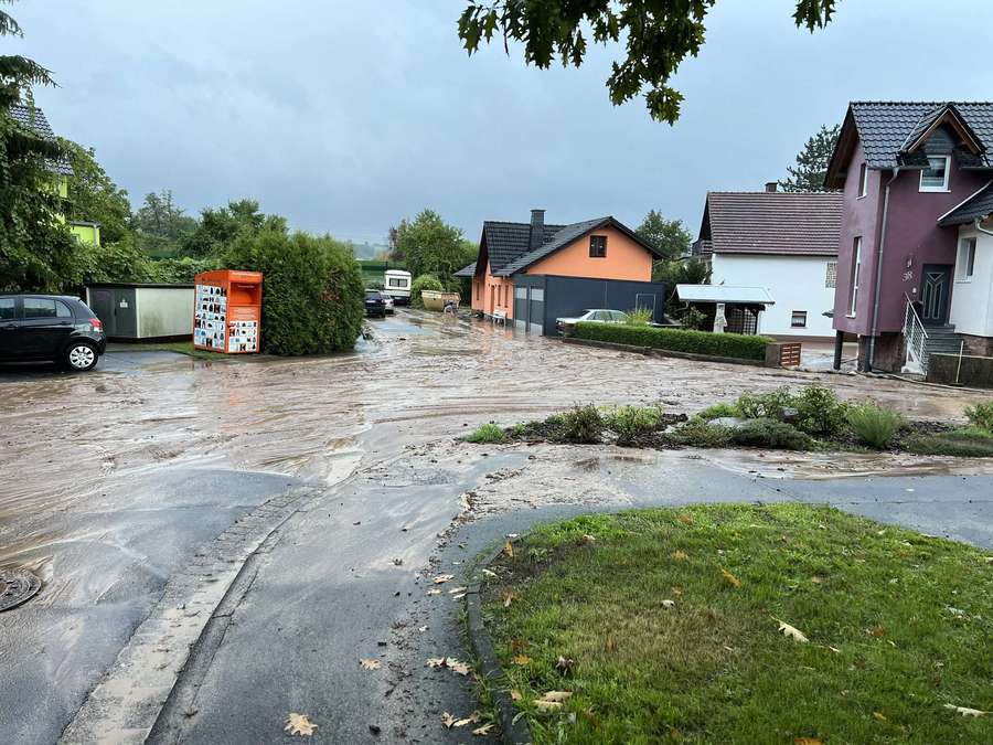 Trotz aller Bemühungen der Einsatzkräfte und vieler freiwilliger Helfer bleibt auch zwei Tage nach dem Starkregenereignis noch viel zu tun: Einige Straßen und Bürgersteige sind immer noch braun von Schlamm. Die Aufräumarbeiten in den Häusern, deren Keller vollgelaufen waren, werden sicher noch wochenlang andauern. Und selbst bei den weniger stark betroffenen Neudorfern dürfte rund ums Haus und im Garten noch einige ungeplante Arbeit anstehen.