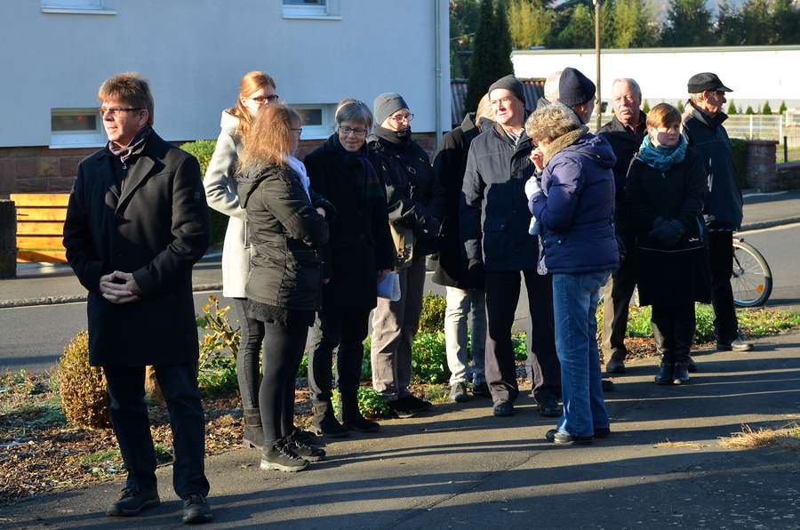 Nach Kranzniederlegungen der Vereine und der Stadt nahmen die Neudorfer Bürger die Gelegenheit wahr, im Inneren des Denkmals ihrer Toten zu gedenken.
