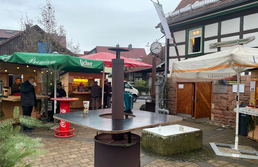 Es gab Bratwürste, Flammkuchen, Waffeln oder Schmalzbrote zu essen. Glühwein, Bier (von regionalen Brauereien) und andere Kaltgetränke durften natürlich auch nicht fehlen.