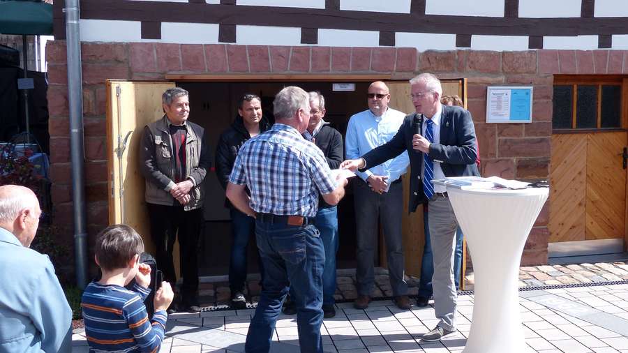 In den Reden von Frank Schneider und Bürgermeister Weiher wurde vor allem den vielen Helfern gedankt, ohne die das Vorhaben (und auch die Einweihungsfeier) nicht gelungen wären. Dank ging auch an die Familie Zimmer, die zu diesem Anlass die ehemalige Dorfschmiede für die Besucher des Festes geöffnet hat.