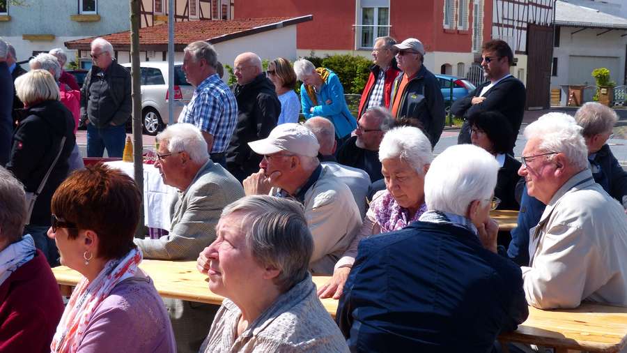 Doch jetzt war Feiern angesagt: Bürgermeister Andreas Weiher und die stellvertretende Stadtverordnetenvorsitzende Astrid Feigl waren gekommen und hatten einige weitere Stadtverordnete und Magistratsmitglieder mitgebracht. Vor allem aber waren etwa 120 –hauptsächlich– Neudorfer Bürger zu diesem erfreulichen Anlass erschienen, darunter viele Vertreter der Neudorfer Vereine. Daraus lässt sich schließen, das das Heimatmuseum von der Dorfgemeinschaft positiv angenommen wird.