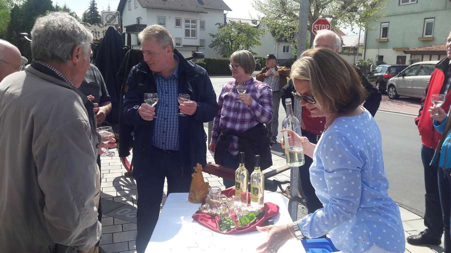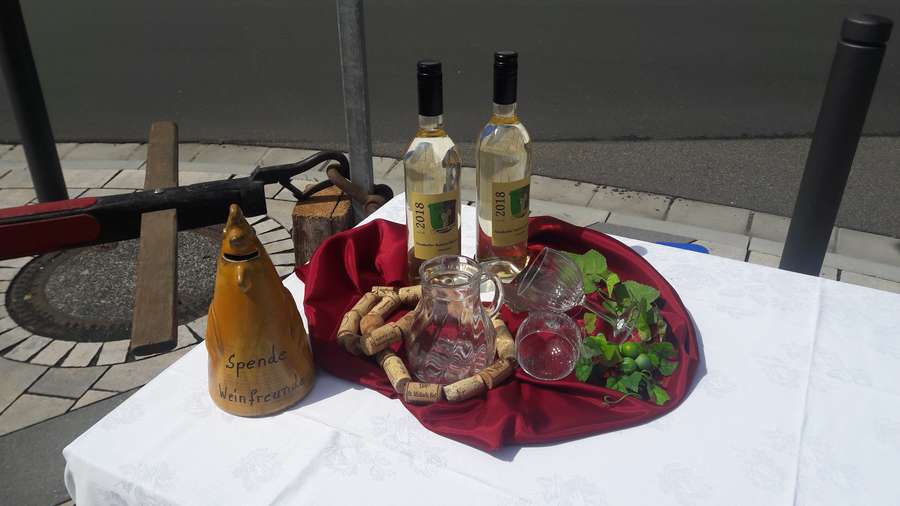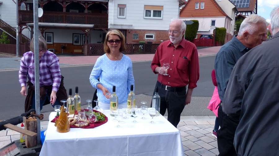 Und die Weinfreunde ließen es sich nicht nehmen, den süffigen Jahrgang 2018 des selbst erzeugten Neudorfer Ratzewäldchens zur Verkostung anzubieten.
