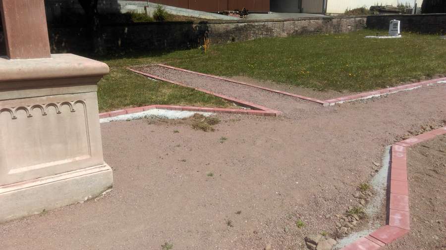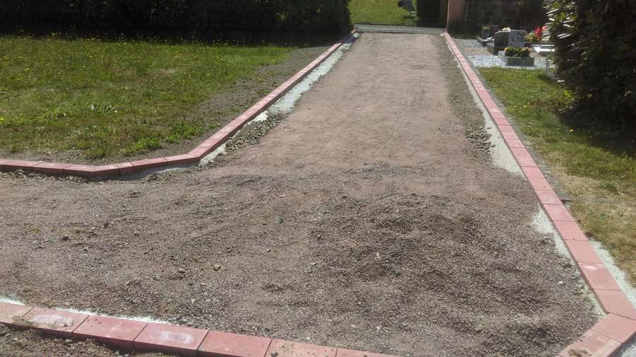Im Verlauf der Arbeiten werden dann noch die Randsteine in Beton verlegt und die Wege mit frischem Kies verfüllt, sodass sich zukünftig eine saubere Wegführung auf dem alten Teil des Neudorfer Friedhofs präsentieren wird.