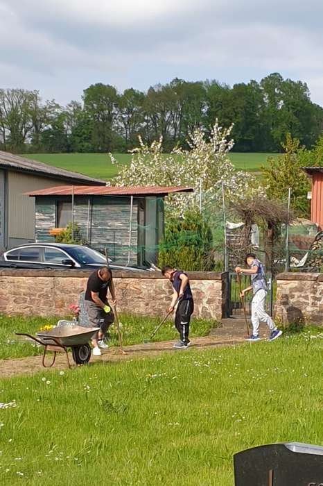 Am 08.05.2023 wurde ein weiterer Einsatz organisiert, bei dem der Rest der Wege gereinigt wurde. Die Helfer waren so zahlreich erschienen, dass zunächst zusätzliches Werkzeug geholt werden musste, die Arbeiten danach jedoch schnell abgeschlossen werden konnten. Jedenfalls sind die Wege auf dem Friedhof nun wieder ansehnlich.