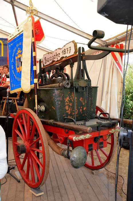 Als der Festgottesdienst beendet war, wartete schon die Blaskapelle des Musikvereins Kassel auf der Straße vor dem Kirchturm. Dort formierte sich ein kleiner Festumzug. Feuerwehrleute, Ehrengäste und viele Gottesdienstteilnehmer zogen mit der Blaskapelle auf einem kleinen Umweg von der Johanneskirche zum Festzelt.