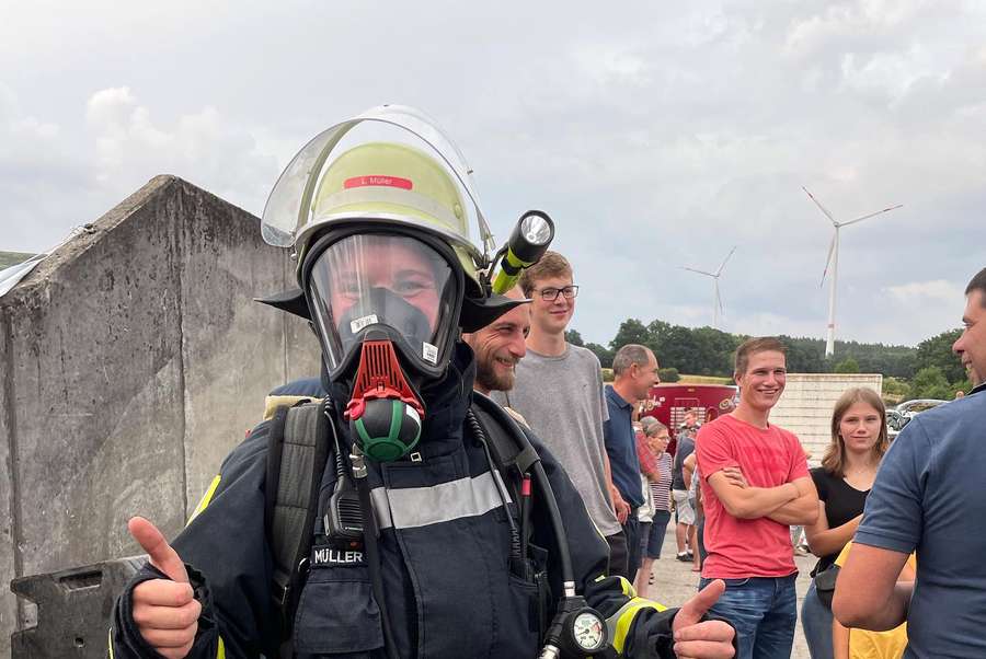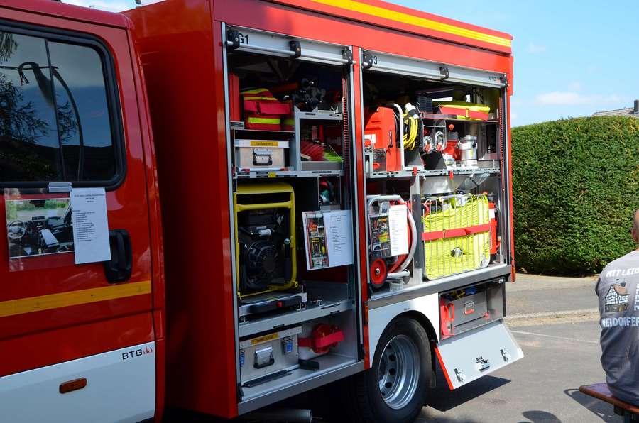 Zahlreiche Besucher hatten sich eingefunden, darunter eine Ehrenformation der Freiwilligen Feuerwehr Neudorf, Bürgermeister Andreas Weiher, der 91-jährige Feuerwehr-Senior Heinz Rasch sowie eine Delegation der Schwesterfeuerwehr aus Neudorf im Erzgebirge.