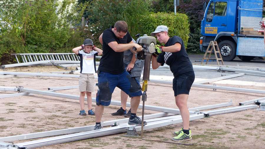 Vorbereitungen zum Fest: Aufbau des Festzeltes