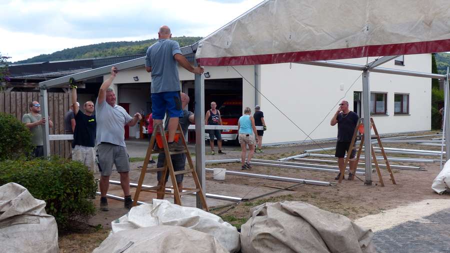Die Vorbereitungen zum Fest –im engeren Sinn– hatten schon am 20.08.2022 mit dem Aufbau des Festzelts begonnen. Dank zahlreicher Helfer dauerte es kaum mehr als zwei Stunden, um das große Zelt zu errichten.
