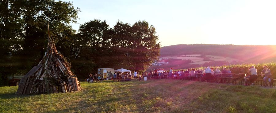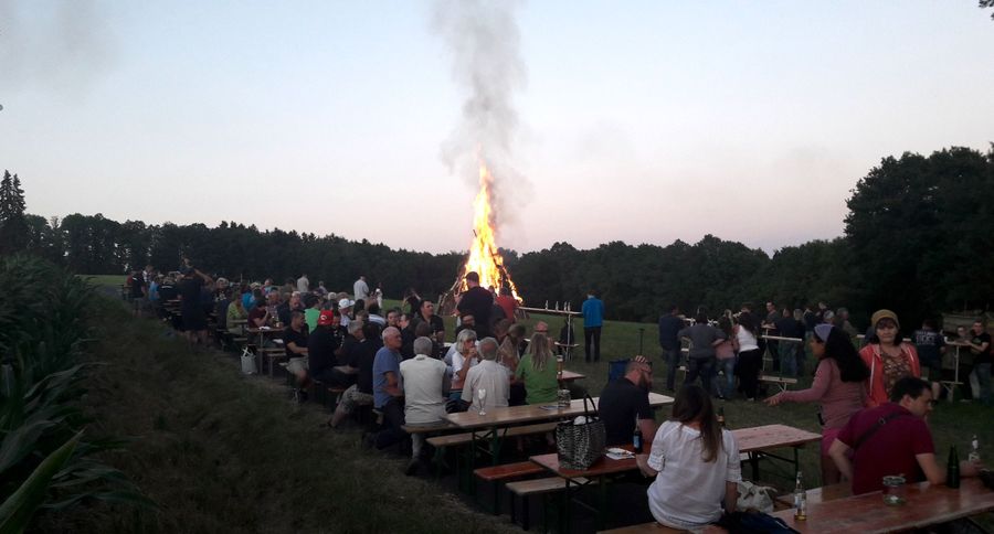 Nach Einbruch der Dunkelheit wurde der perfekt aufgeschichtete Holzstapel angezündet und schickte schon kurz darauf die Flammen hoch in den Abendhimmel.