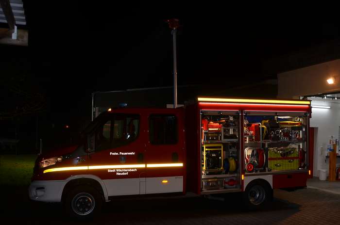 - Ausfahrbarer Lichtmast mit dreh- und schwenkbaren Strahlern zur Ausleuchtung der Einsatzstelle,
