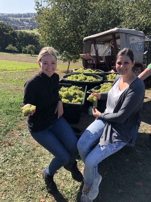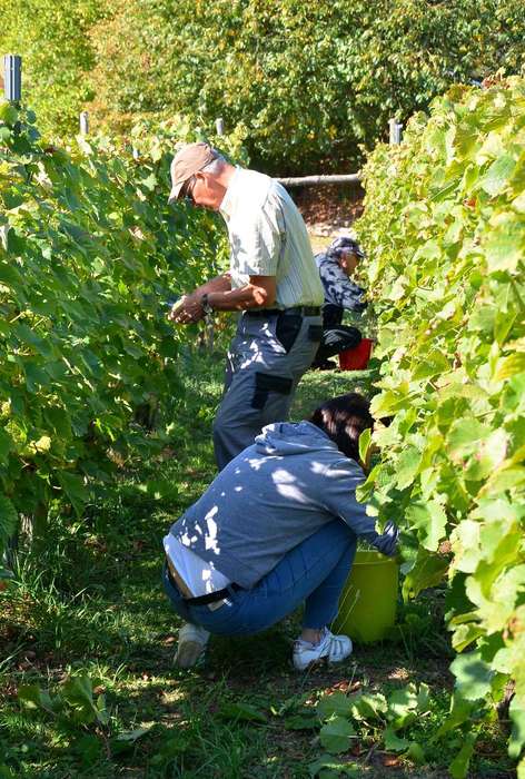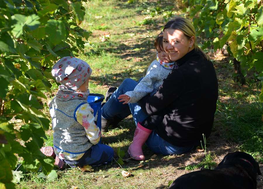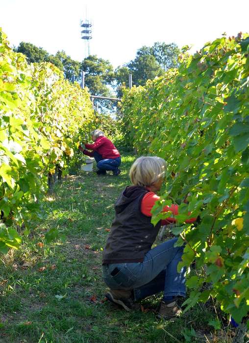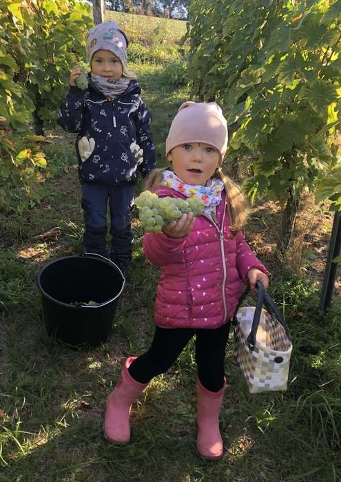 Obwohl eine Reihe „altgedienter” Erntehelfer –meist wegen Urlaub– fehlte, waren am 21.09.2019 ab 09:00 Uhr ausreichend viele Helfer zur Weinlese am Weinberg. Erfreulicherweise waren darunter –wie schon bei der Kelleröffnung einen Monat zuvor– recht viele junge Eltern mit ihren Kindern.